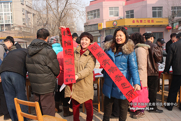家家户户贴春联,红红火火过大年。在马年的春节即将到来之际,为使广大居民朋友度过一个欢乐祥和的春节,2014年1月25日上午,裕华区政协与民进裕华总支联合中国书协河北省书法考级中心共同走进裕华区金马二社区,开展“迎新春、送春联、献爱心”活动,为居民现场写春联、送春联。