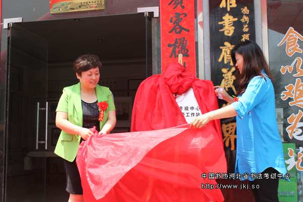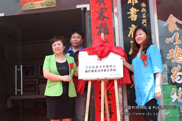 曲周县副县长曹素芝、曲周工作站董瑞民、中国书协河北省书法考级中心主任揭牌