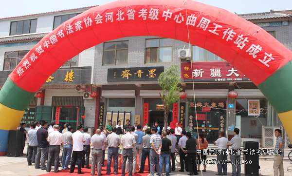 六月二十六日上午,中国书协河北省书法考级中心曲周县书法考级工作站在曲周县墨清斋正式揭牌成立。参加这次揭牌的省市县书法考级中心负责人及书法爱好者等五十余人。 中书协河北省书法考级中心主任曹晓林、副主任姜贵增,邯郸市书法考级基地主任吴沛超、常务副主任张振彪、副主任窦江玉,及曲周县政府副县长曹素芝,少年素质教育报记者宋哲,河北金赛博板业集团董事长张国华,金瑞汽贸宋经理出席揭牌仪式。 仪式上工作站董瑞民介绍了工作站筹备情况,曹县长在挂牌仪式上对书法教育传播进行讲话。省书法考级中心主任曹晓琳也在揭牌仪式上讲话,她说:“曲周县有了书法考级工作站,这是曲周县文化生活中的一件大事、好事。这对规范汉字的书写,对普及书法教育,对弘扬传统文化大有裨益。”