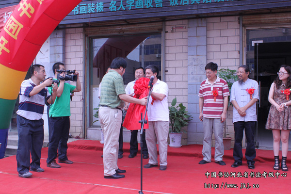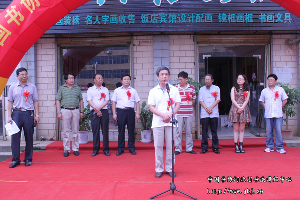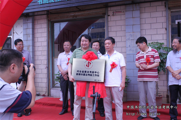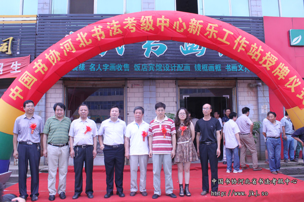 8月2日上午,中国书协河北省书法考级中心新乐市书法考级工作站在新乐市当代书画院正式揭牌成立。参加此次揭牌的领导嘉宾及书法爱好者共60余人。 中书协河北省书法考级中心常务副主任姜贵增、秘书长冯欢,新乐市宣传部部长张抗震,新乐市人大副主任王俊生,新乐市政协副主席康国平,新乐市文联主席、书协主席张瑞法,河北美院院长甄忠义 、新乐市书法考级工作站站长陈永杰、副站长李建儒等出席揭牌仪式。仪式上新乐市书法考级工作站站长陈永杰致欢迎词并介绍了工作站的筹备情况和对以后考级工作的计划,省书法考级中心常务副主任姜贵增授牌并对省书法考级中心近期主要工作及活动作了简单介绍,姜贵增主任对新乐市当代书画院积极承办考级事务表示肯定,并希望新乐市书法考级工作站能秉承省书法考级中心“书法育人”的宗旨,继承和发扬传统文化,为新乐及周边县市的书法教育普及和文化生活提升贡献力量。