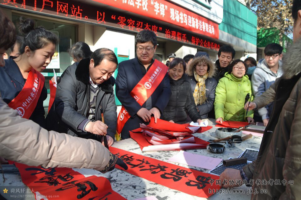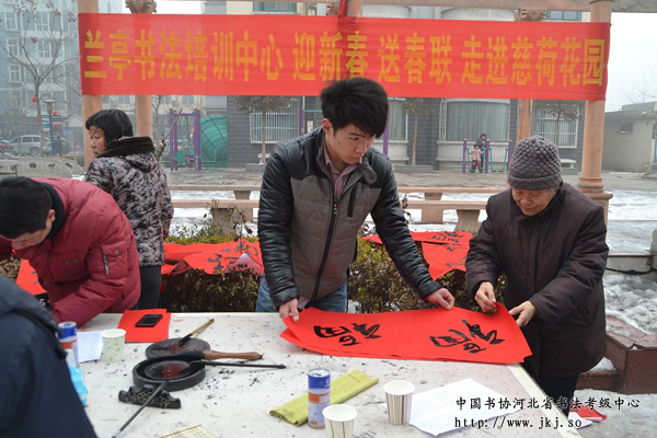 近日,中国书协河北省书法考级中心邯郸磁县书法考级工作站在磁县农业银行及慈荷花园小区等地分别进行了几场热热闹闹的“兰亭书法学校迎新春送春联活动”。