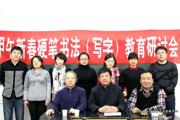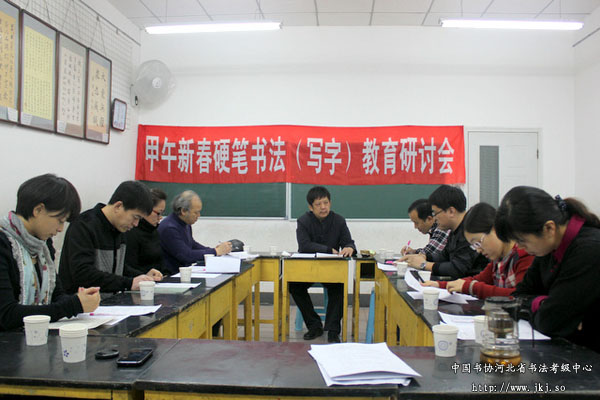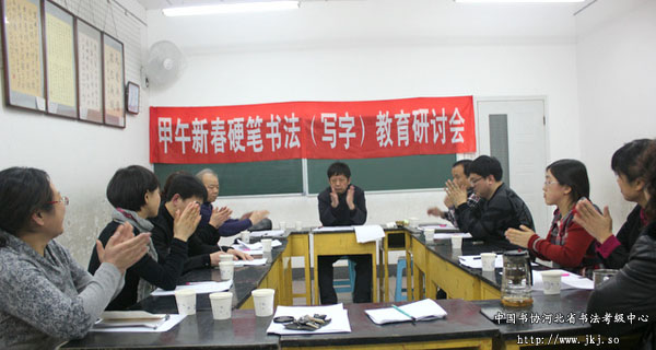 近日,由秦皇岛市教育科学研究所、秦皇岛市硬笔书法协会、新世纪书法学校联合主办的“甲午新春硬笔书法(写字)教育研讨会”在新世纪书法学校举行。中国书画等级考试委员会专家委员、中国书法家协会河北省考级中心特聘教授、河北省硬笔书法协会副主席彭树生,秦皇岛市教科所书法教研员常小潮,河北省硬协副秘书长王伯民及河北省硬协理事冯国栋、王丽华、李小娜、焦健、杨卓、周丽娟等10余位嘉宾出席,围绕“硬笔教学常见问题”、“教师教学困扰”等话题进行现场交流、研讨。