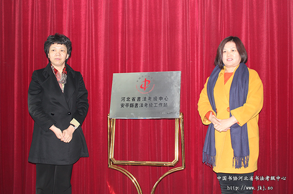 安平县委常委、宣传部长郭晓静与中国书协河北省书法考级中心主任曹晓林共同为安平县考级工作站揭牌。