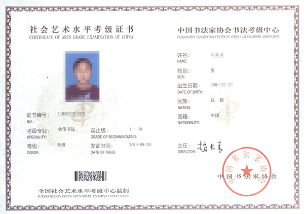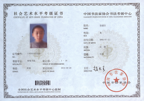 硬笔书法等级证书