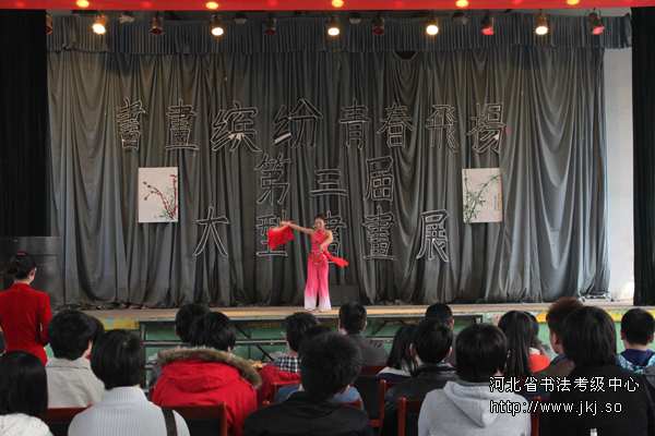 河北政法职业学院于2013年3月23日在西院小礼堂成功举办了“书画缤纷  青春飞扬”第三届大型书画展。河北政法职业学院财经系主任冯兆蕙主任、河北政法职业学院曹清江老师、中国书法家协会河北省书法考级中心余其平副主任以及冯欢秘书长莅临活动现场。参加本次活动的有政法财经系学生会和书法协会全体成员以及河北体育学院、河北经贸大学、河北科技大学等20个学校的书法社代表。