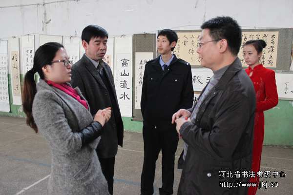 中国书法家协会河北省书法考级中心余其平副主任和河北政法职业学院财经系主任冯兆蕙主任交谈