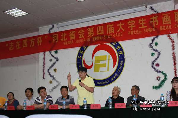 世界艺术家协会副会长罗可、中国美术家协会会员葛志国、鹿泉市书法家协会名誉主席赵九辰出席开幕式并担任评委。中国书法家协会河北省书法考级中心代表马资博、郭晓华出席活动并对大学生书法考级进行了宣传和交流;省会各界人士也对本活动表达了支持与关心,著名画家经纪人徐蔓出席本次活动;省会众多高校书画协会代表到现场进行了交流学习。