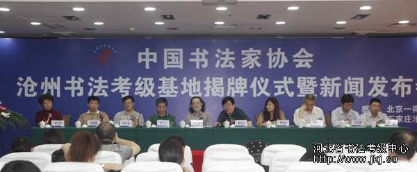 15日上午,中国书协河北省书法考级中心沧州书法考级基地揭牌仪式暨新闻发布会在沧州市迎宾馆举行。能加此次会议的有:中国书协河北省书法考级中心主任曹晓林,中国书法家协书法考级中心主任崔志强,石家庄市委原组织部常务副会长姜贵增,河北书法家协会副主席陈茂才,沧州市文联副主席唐文君,石家庄沧州商会常务副会长兼秘书长李勇昌,沧州市原政协主席葛义栋,沧州市教育局副局长李金柱,沧州市书法考级基地宋忠起等。这标志着沧州有了书法考试机构,即日起到5月26日书法爱好者可报名参加书法考级了。