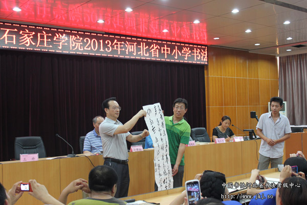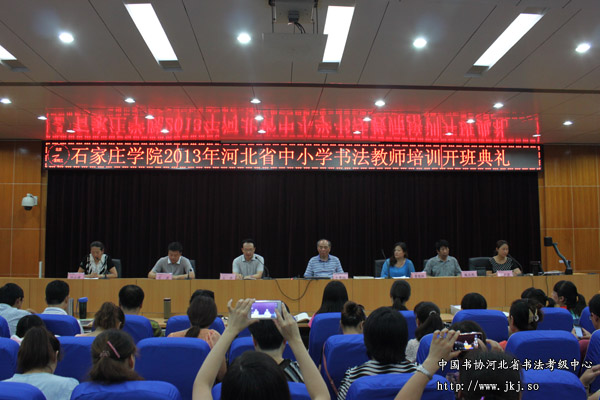 8月9日上午,由中国书协河北省书法考级中心、石家庄学院联合承办2013年河北省中小学书法教师培训于石家庄学院报告厅举行开班典礼。