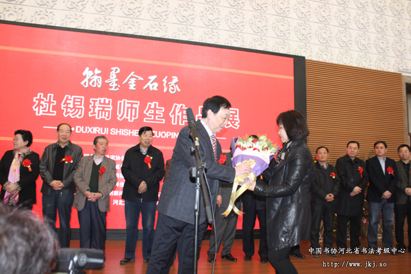 由河北省书法家协会、河北博物院共同主办的“翰墨金石缘—杜锡瑞师生作品展”于2014年3月22日上午10:00在河北省博物馆开幕。