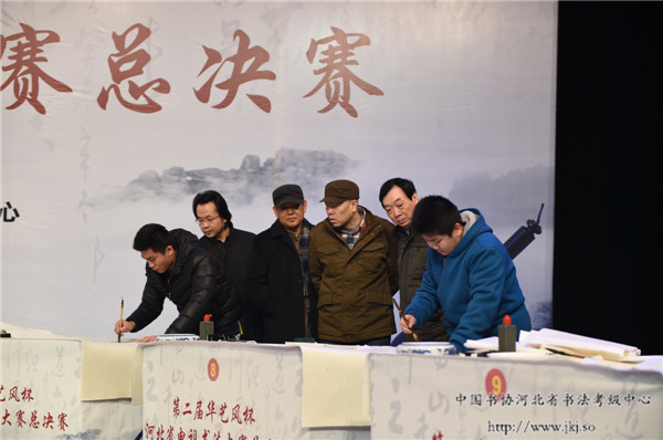 第二届“华艺风杯”河北省电视书法大赛总决赛成人行书组比赛现场