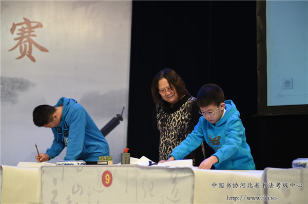 河北省书法家协会副主席、著名书法家任桂子观看小选手现场创作