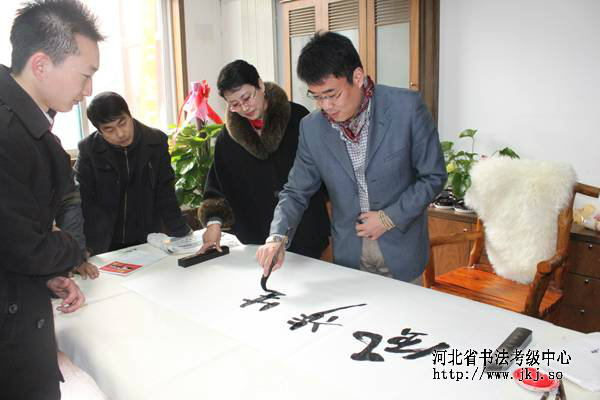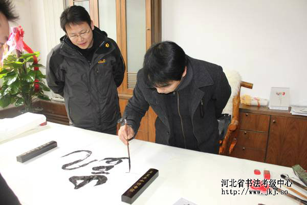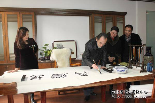 中国书法家协会书法考级中心主任崔志强来中心参观,在中心和多名书法家展开笔会活动。