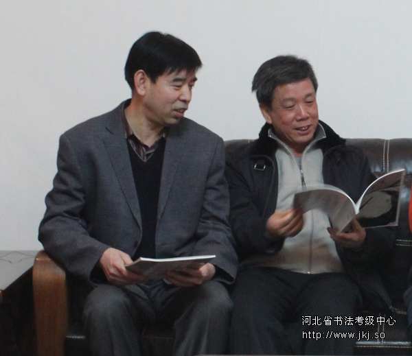 中国书法家协会河北省书法考级中心常务副主任余其平先生与姜贵增先生。