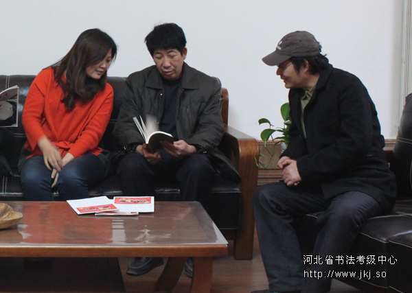 中国书法家协会河北省书法考级中心主任曹晓林女士与中国书法家协会会员、石家庄市书法家协会驻会副主席兼秘书长魏兵然先生,中国书法家协会会员、石家庄市书法家协会篆刻委员会秘书长李国良先生。