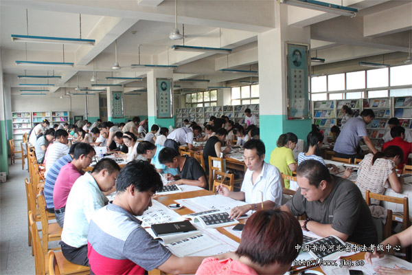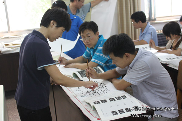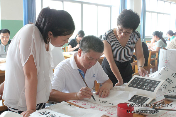 隶书实践练习课上,中国书协河北省书法考级中心的辅导老师为学员细心指导