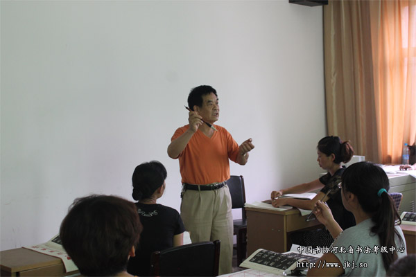 隶书实践练习课上,中国书协河北省书法考级中心执行主任姜贵增指导学员,并现场示范