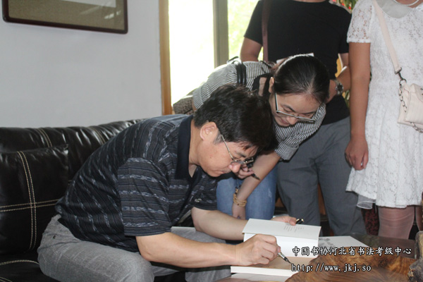 中国书协河北省书法考级中心副主任王占军为学员签名留念