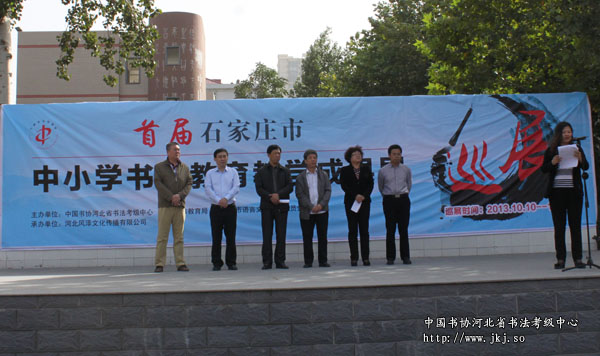 首届石家庄市中小学书法教育教学成果展巡展式上,石家庄市教育局副局长张忠明致辞
