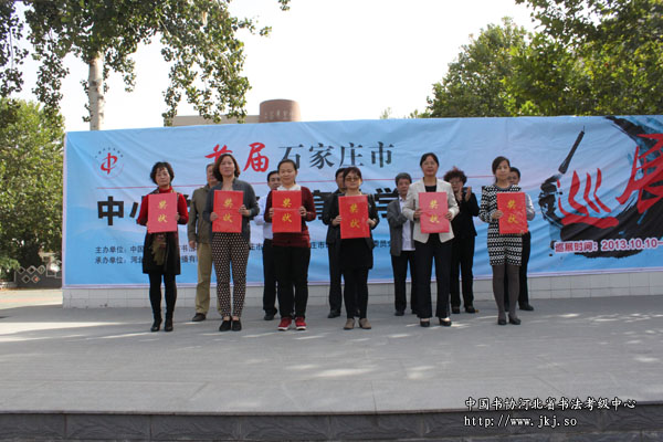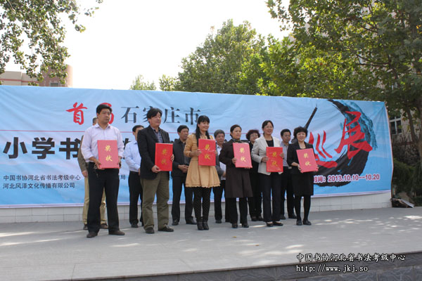 河北省教育厅副厅长张益禄、石家庄市教育局副局长张忠明、中国书协河北省书法考级中心主任曹晓林等人合影