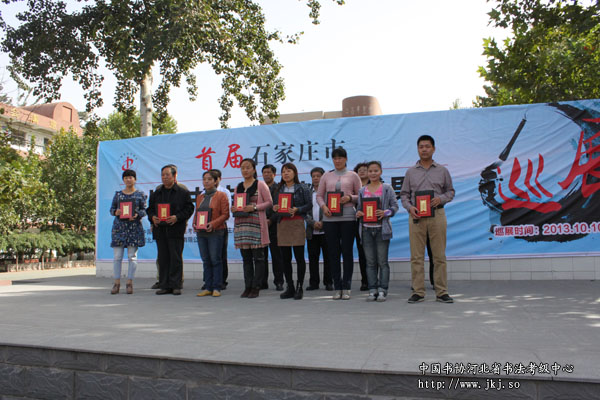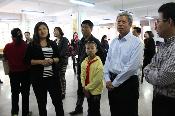 巡展仪式结束后,河北省教育厅副厅长张益禄、石家庄市教育局副局长张忠明、中国书协河北省书法考级中心主任曹晓林、中国书协河北省书法考级中心常务主任姜贵增、石家庄文化产业协会会长田炳建、石家庄文化产业协会秘书长张建立、石家庄语言文字工作委员会主任于学红、石家庄市第三十八中校长解仲胥及老师和同学一起参观中小学师生书法作品
