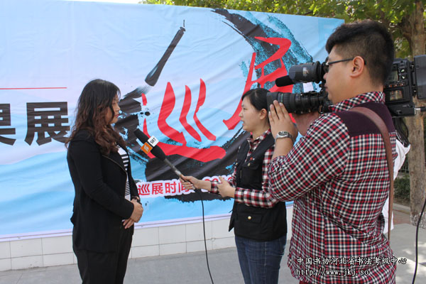 巡展仪式后,中国书协河北省书法考级中心主任曹晓林接受电视台记者采访