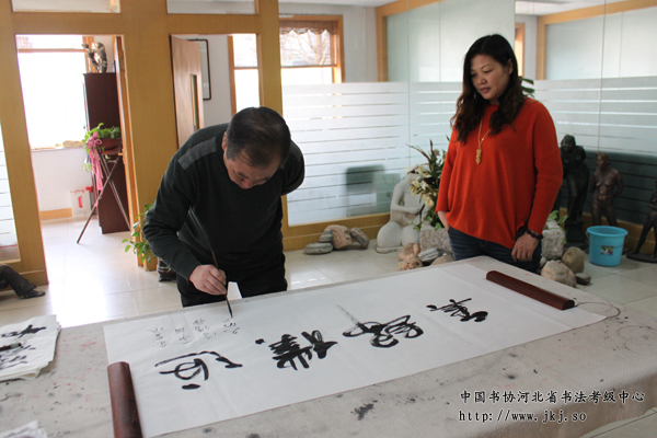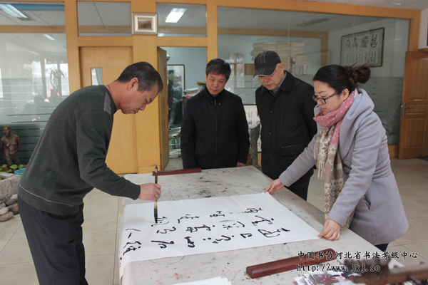 河北省文化厅副厅长李建华在中国书协河北省书法考级中心挥毫