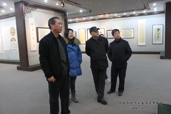 中国书协河北省书法考级中心主任曹晓林陪同河北省文化厅副厅长李建华参观展览