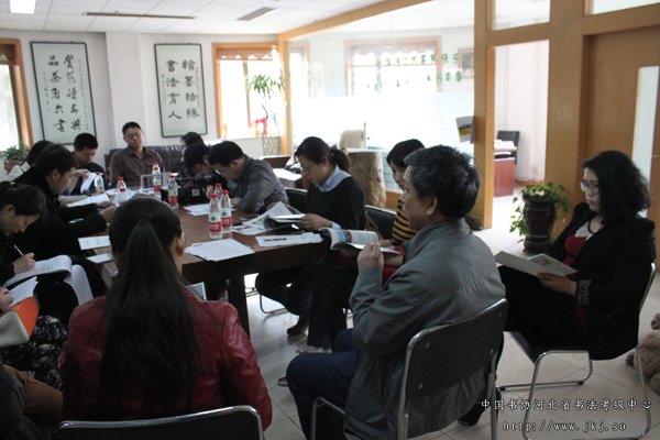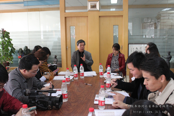 中国书协河北省书法考级中心常务主任姜贵增主持会议。会上,姜主任详细介绍了首届“华艺风杯”河北省电视书法大赛从征稿、评选到决赛的情况。并就第二届“华艺风杯”河北省电视书法大赛征稿做了简单介绍。