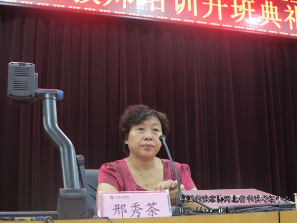 她最后说,经过培训,大家回去之后就要担负起教书育人的责任,为此,我希望大家要珍惜这次培训机会,多学到一些书法理论和技法。当然,培训不是终点,而是学习书法的开始,十天的培训只是给大家引引路子,希望大家经过自己的努力,成为一名合格的书法教师,为普及全省书法教育贡献力量!
