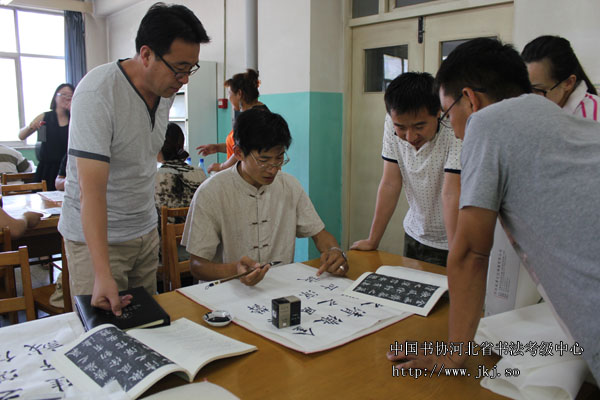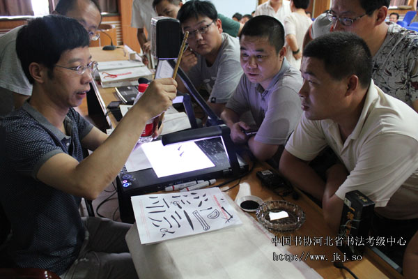 中国书协河北省书法考级中心注册教师杨宝成现场指导省培学员书法技巧