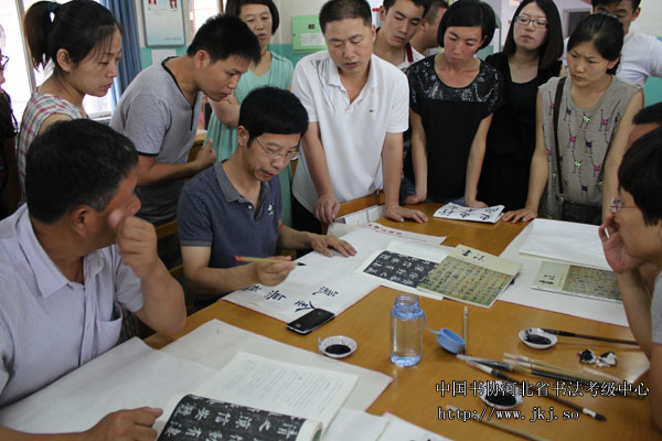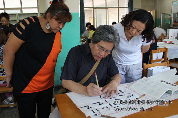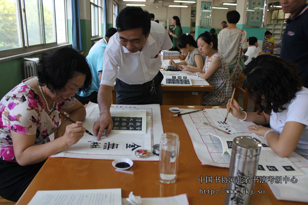 中国书协河北省书法考级中心辅导老师窦江玉现场指导省培学员书法技巧