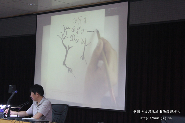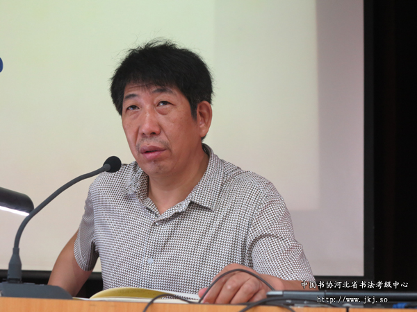中国书协河北省书法考级中心考官、特聘教授、市书协副主席魏兵然为学员讲书法创作知识