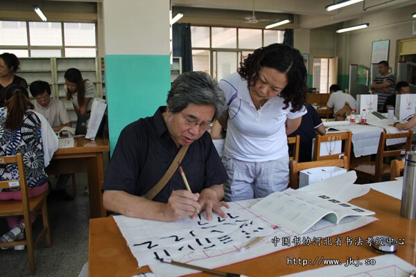 中国书协河北省书法考级中心邯郸书法考级基地主任窦江玉为学员辅导