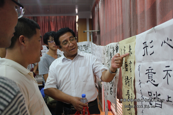 中国书协河北省书法考级中心主任曹晓林与学员交流