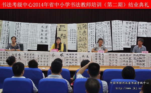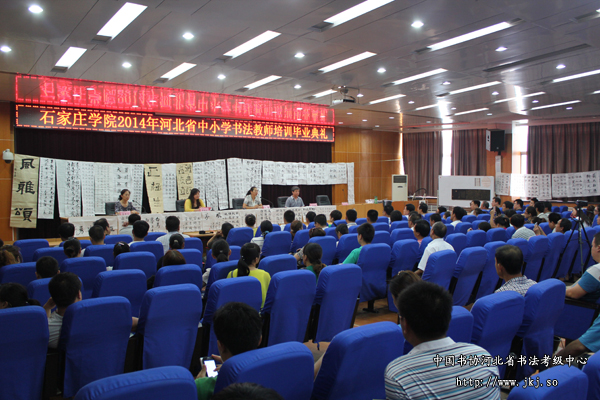 7月31日上午,由中国书协河北省书法考级中心、石家庄学院联合承办2014年河北省中小学书法教师培训班(第二期)于石家庄学院报告厅举行结业典礼。