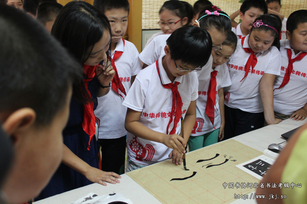 河北省书法考级中心书法教师和弦为孩子们讲课