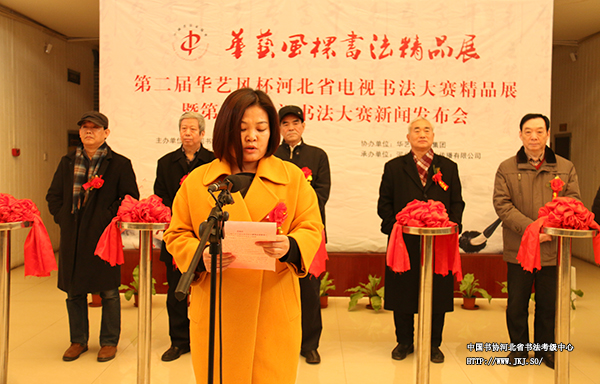 首先欢迎大家来参加第二届“华艺风杯”河北省电视书法大赛精品展开展仪式暨第三届河北省电视书法大赛新闻发布会,我谨代表中国书协河北省书法考级中心对大家的到来表示热烈的欢迎和诚挚的感谢!