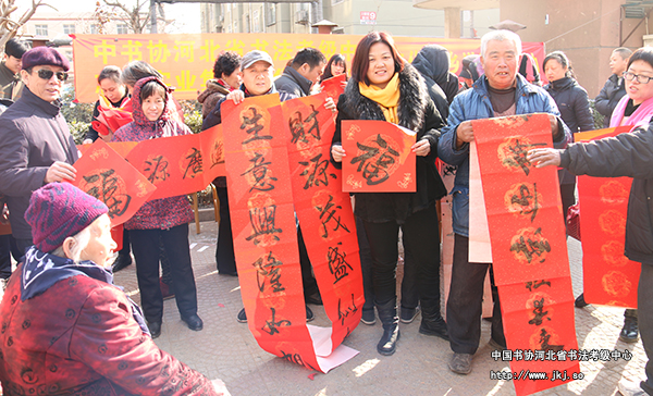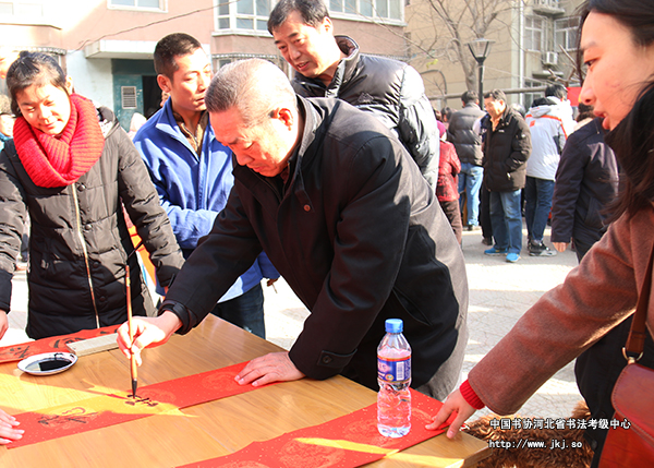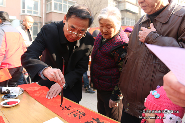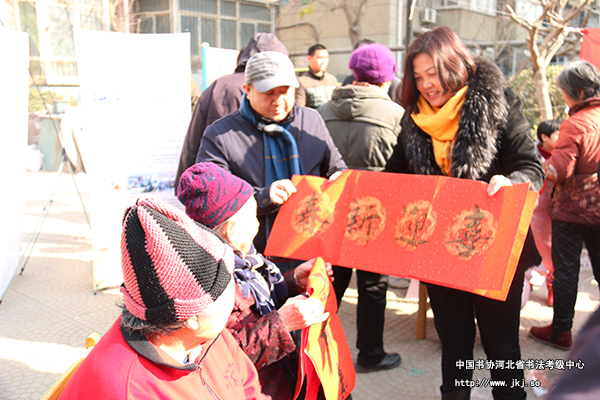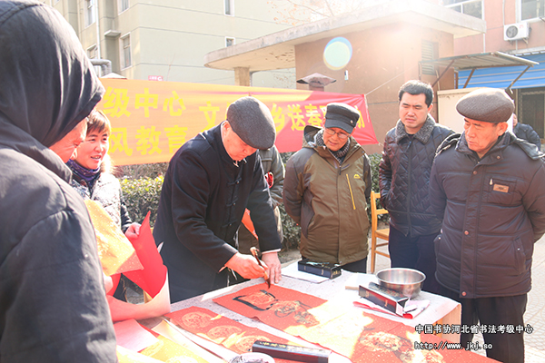 家家户户贴春联,红红火火过大年。在春节即将到来之际,为使广大居民朋友度过一个欢乐祥和的春节,2015年2月7日由中国书协河北省书法考级中心、志公实业集团、华艺风教育联合举办的文化下乡送春联活动在三教堂社区成功举行。