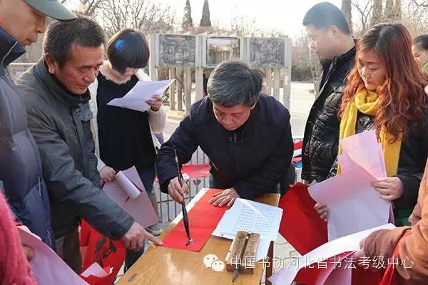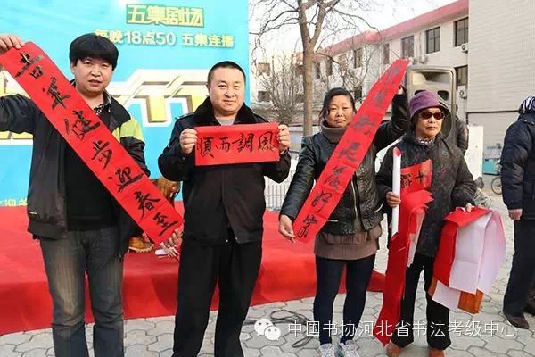 欢天喜地迎春到,红红火火送春联!在羊年春节即将到来之际,中国书协河北省书法考级中心与石家庄广播电视台娱乐频道于2015年2月10日携手走进联盟小区送祝福,为居民现场写春联、送春联。