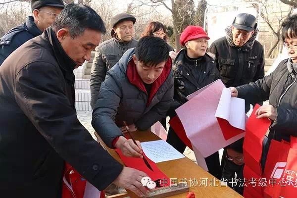 中国书协河北省书法考级中心书法专业教师和弦为居民书写春联