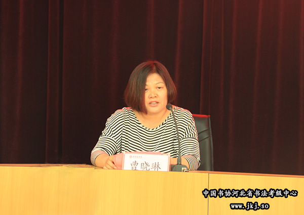 致辞中,曹晓林感谢省教育厅对省书法考级中心的信任和支持,感谢石家庄学院为这次培训的学习环境和食宿及后勤保障等做的大量准备工作。