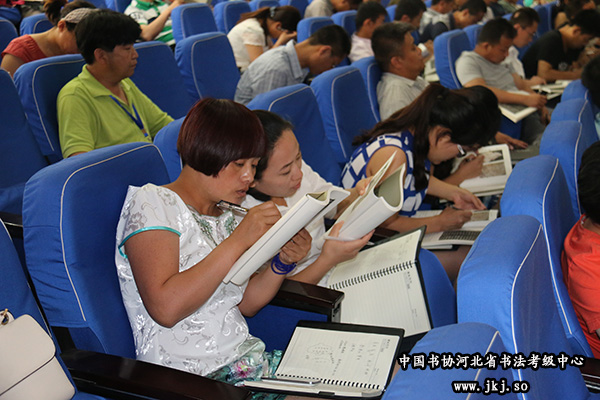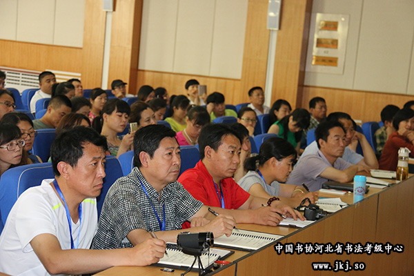 由中国书协河北省书法考级中心和石家庄学院承办的2015年全省中小学书法教师培训班,于今天在石家庄学院举行开班典礼。