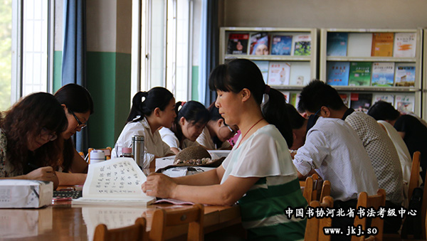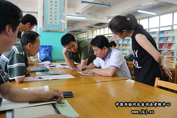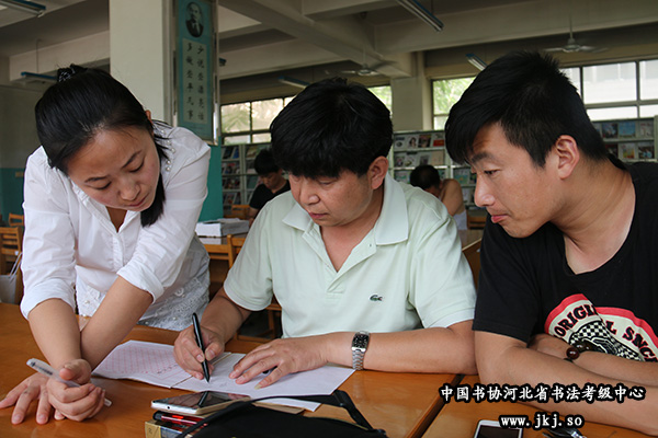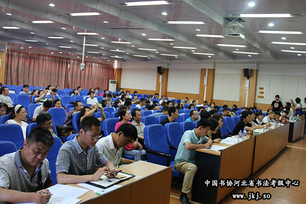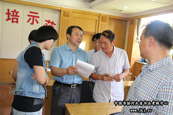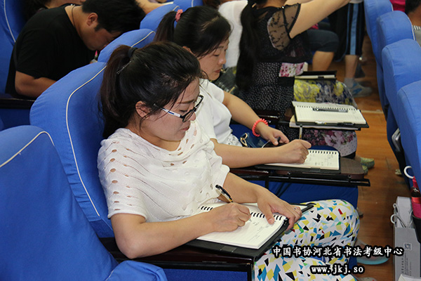 中国书协河北省书法考级中心副秘书长杨敬科为学员示范硬笔技法