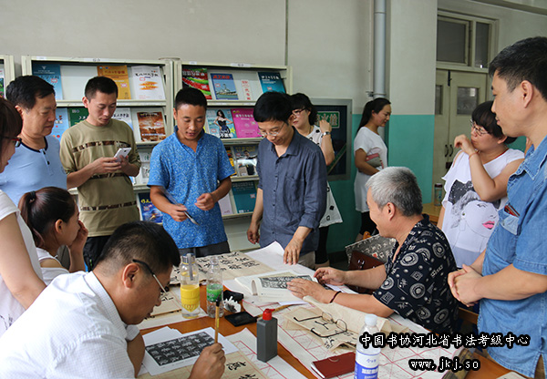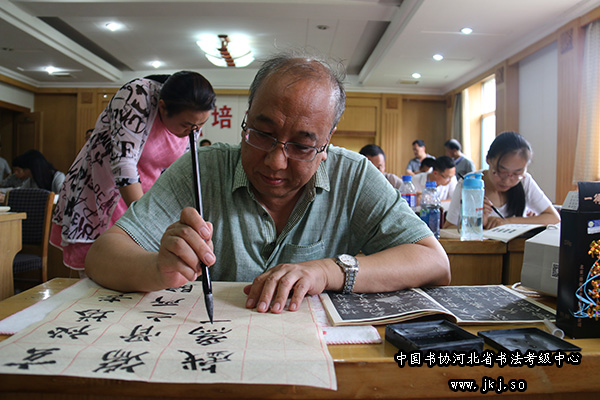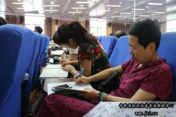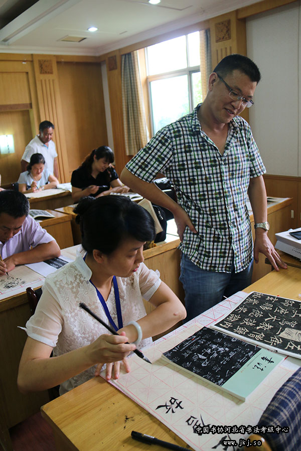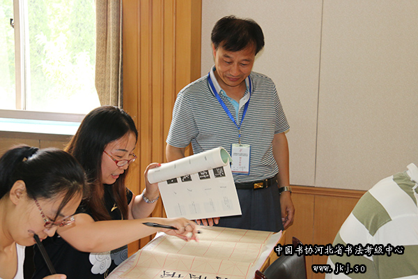 7月16日,第二期全省中小学书法教师培训第二天,中国书协河北省书法考级中心特聘教授杨春老师为学员讲授楷书技法实践,并与学员互动,下午学员分组练习。
