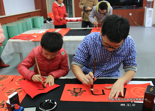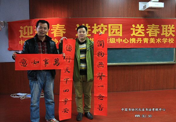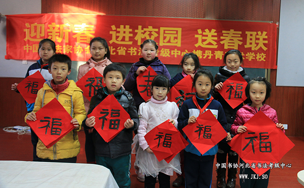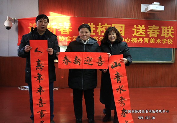 河北省书法考级中心走进维明路小学迎新春送春联