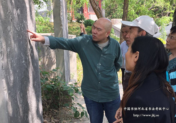 4月25日上午,参加翟卫民书法研修班的学员们,在翟老师的带领下专程去封龙山访碑。在汉碑前,翟老师从汉碑刻的形式、结构、刀法等给学员们讲解。之后,翟卫民和学员们一起去封龙山书院参观。下午翟卫民老师继续指导学员临写碑帖。