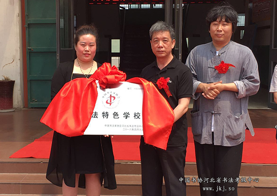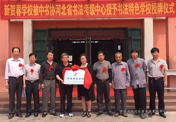曲周县新贺春学校被河北省书法考级中心授予“书法特色学校”牌匾。