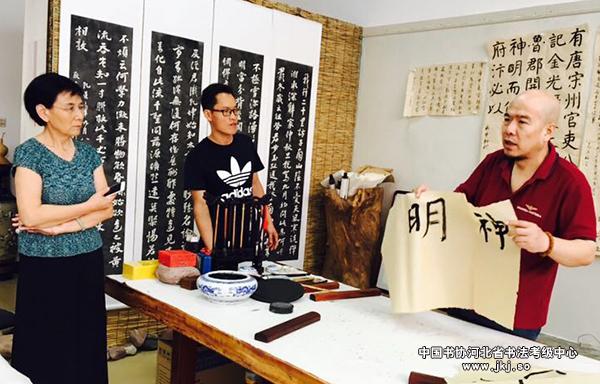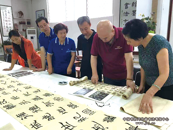 由中国书协河北省书法考级中心主办的“翟卫民书法研修班”举行第四次授课,此次授课期间翟老师对一个月来学员临摹和创作作品进行一一点评,并为学员进行示范,还对学员在临摹创作中遇到的问题进行了解读。按照学习安排,学员们继续临摹碑帖。