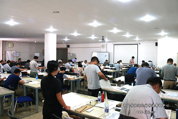 8月21日,由中国书法家协会河北省书法考级中心举办的第十期中国书法家协会书法注册教师暨专业级考试圆满结束。本次注册教师资格认证考试分初级、中级、高级三个级别,专业级分专业一级、专业二级。考试分为两个阶段:上午为临摹、创作,下午为理论考试。参加本次考试的考生有来自全省各地、各行各业的考生40余人。无论是临摹创作,还是理论考试环节,每一位考生都很认真。